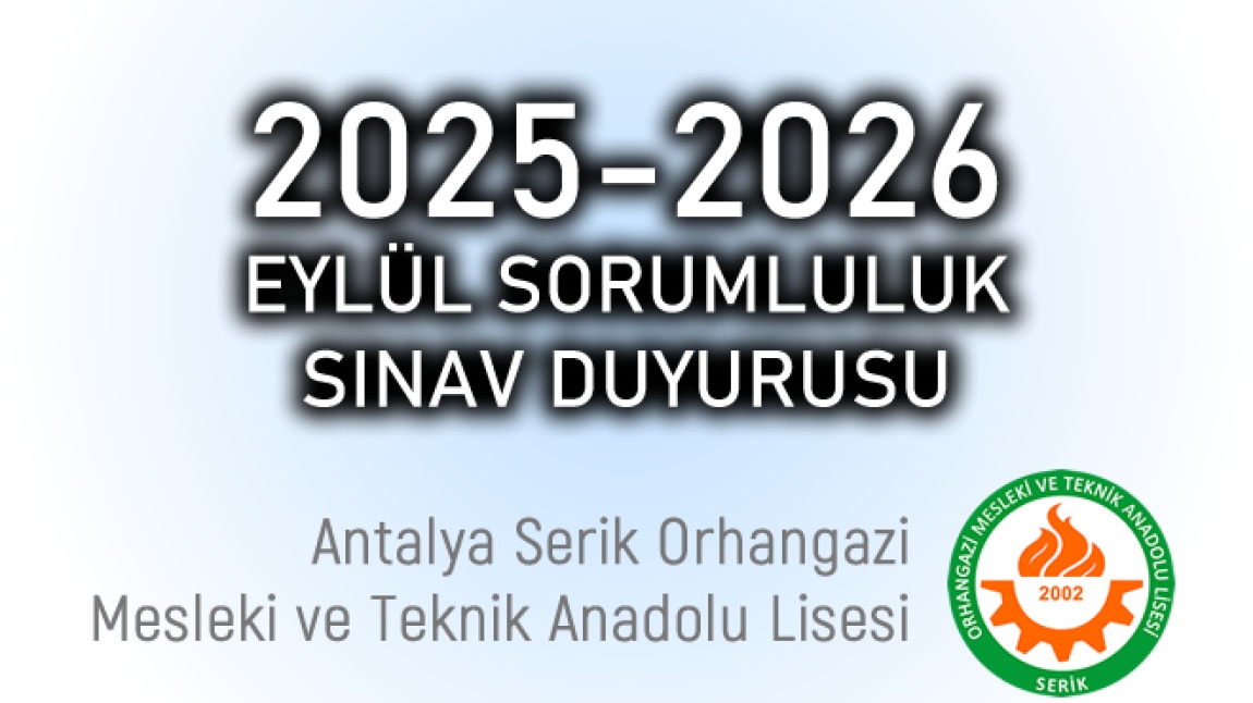2025-2026 Eğitim Öğretim Yılı EYLÜL Sorumluluk Sınav Duyurusu